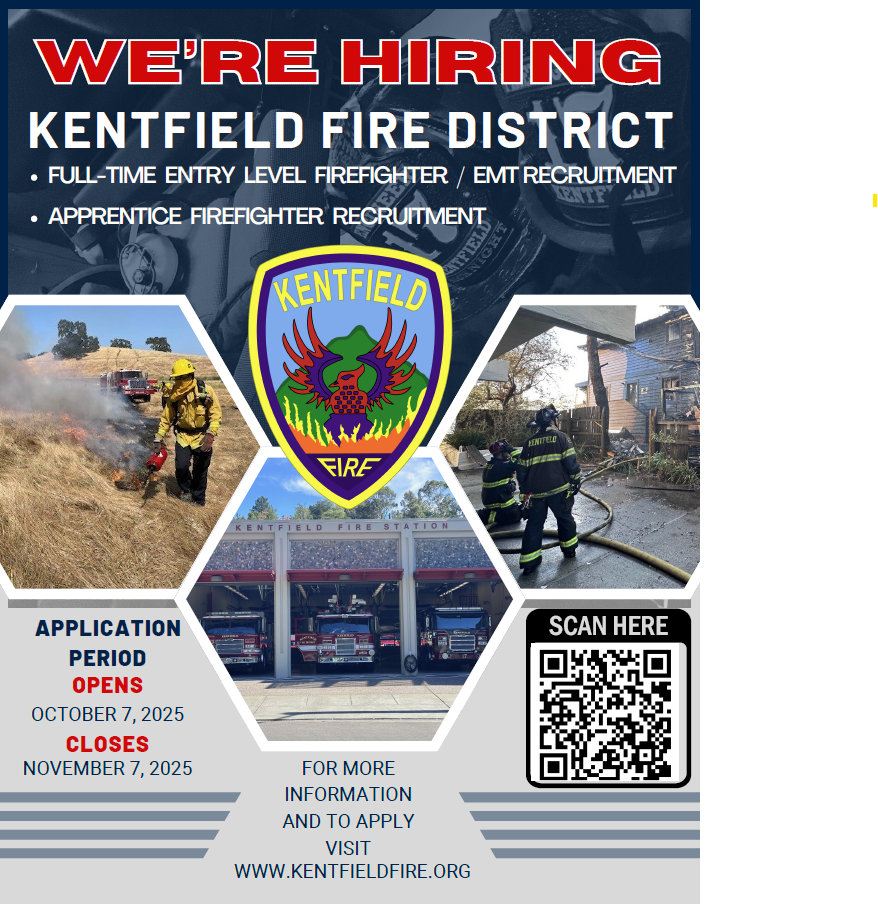 Join Us! Kentfield Fire District's Open House Saturday, October 12, 2024 10 AM to 2 PM * Bouncy House * Kids Activities * Hot Dogs * Community Partners * Smokey the Bear * Meet our Firefighters ...